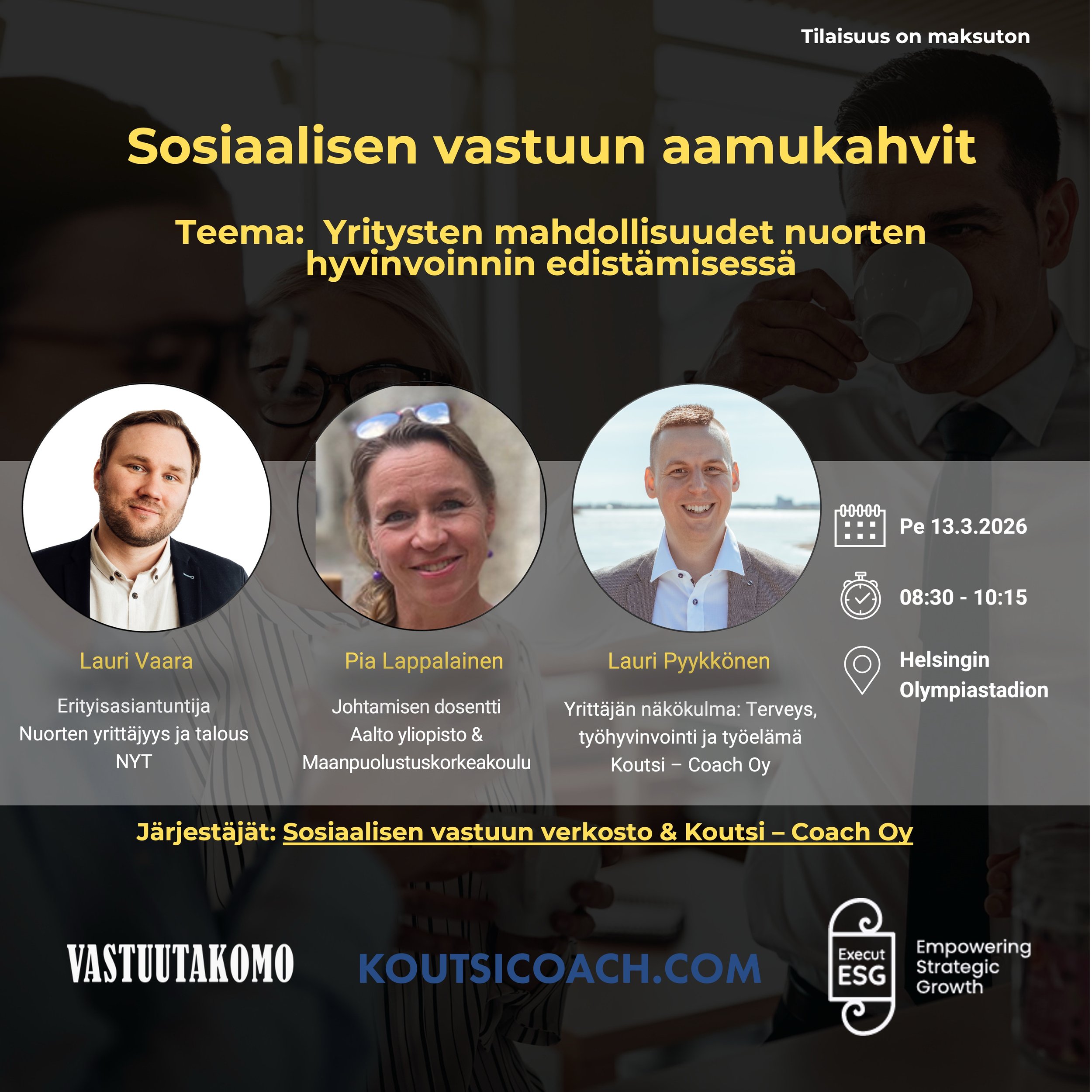 Koutsi - Coach järjestää tapahtuman yhdessä Sosiaalisen vastuun verkoston kanssa.